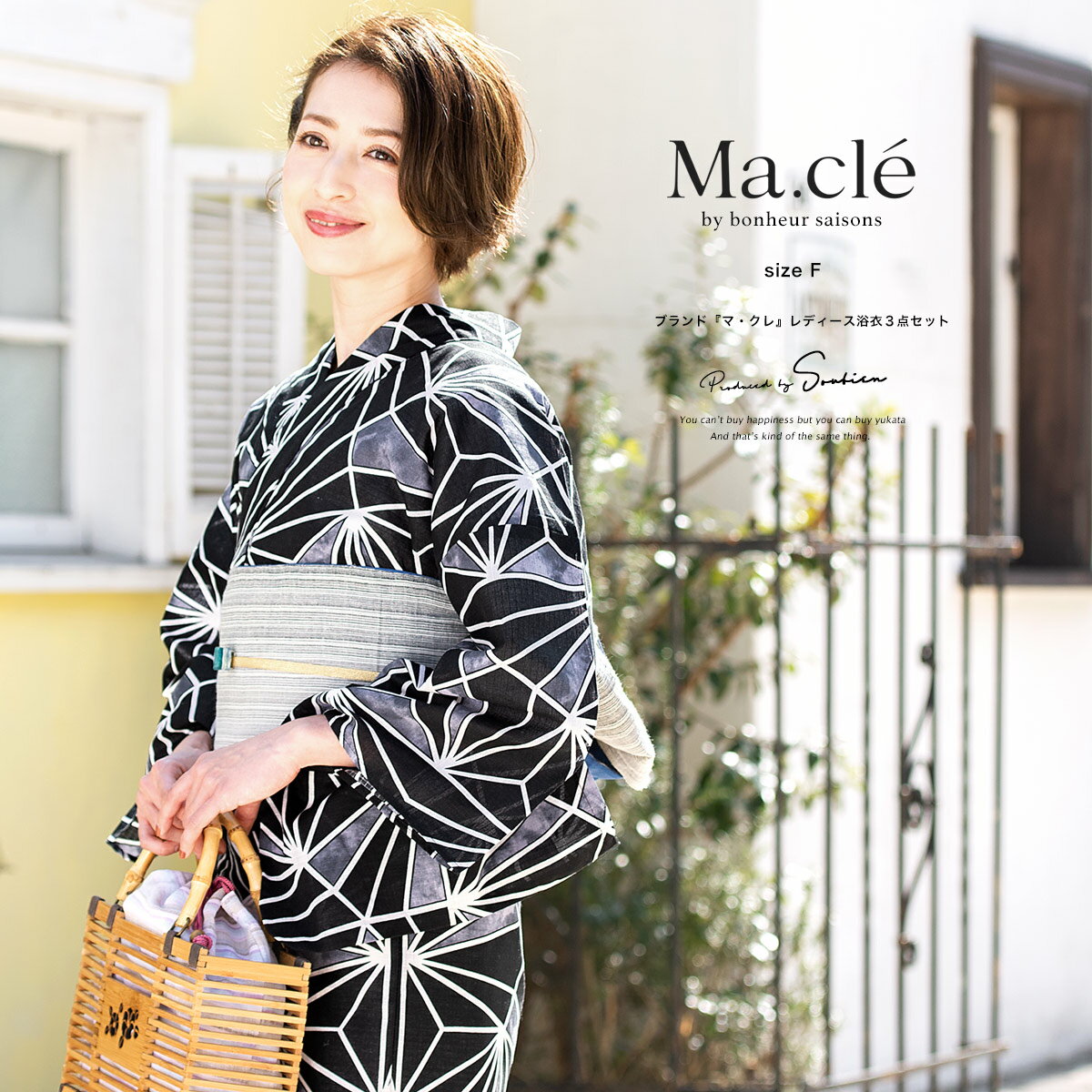 【半額SALE~6/11 1:59】レディース浴衣 bonheur saisons ボヌールセゾン 黒 ブラック 白 ホワイト 格子 ギンガムチェック モダン 綿 変わり織り 夏祭り 花火大会 女性用 仕立て上がり【あす楽対応】