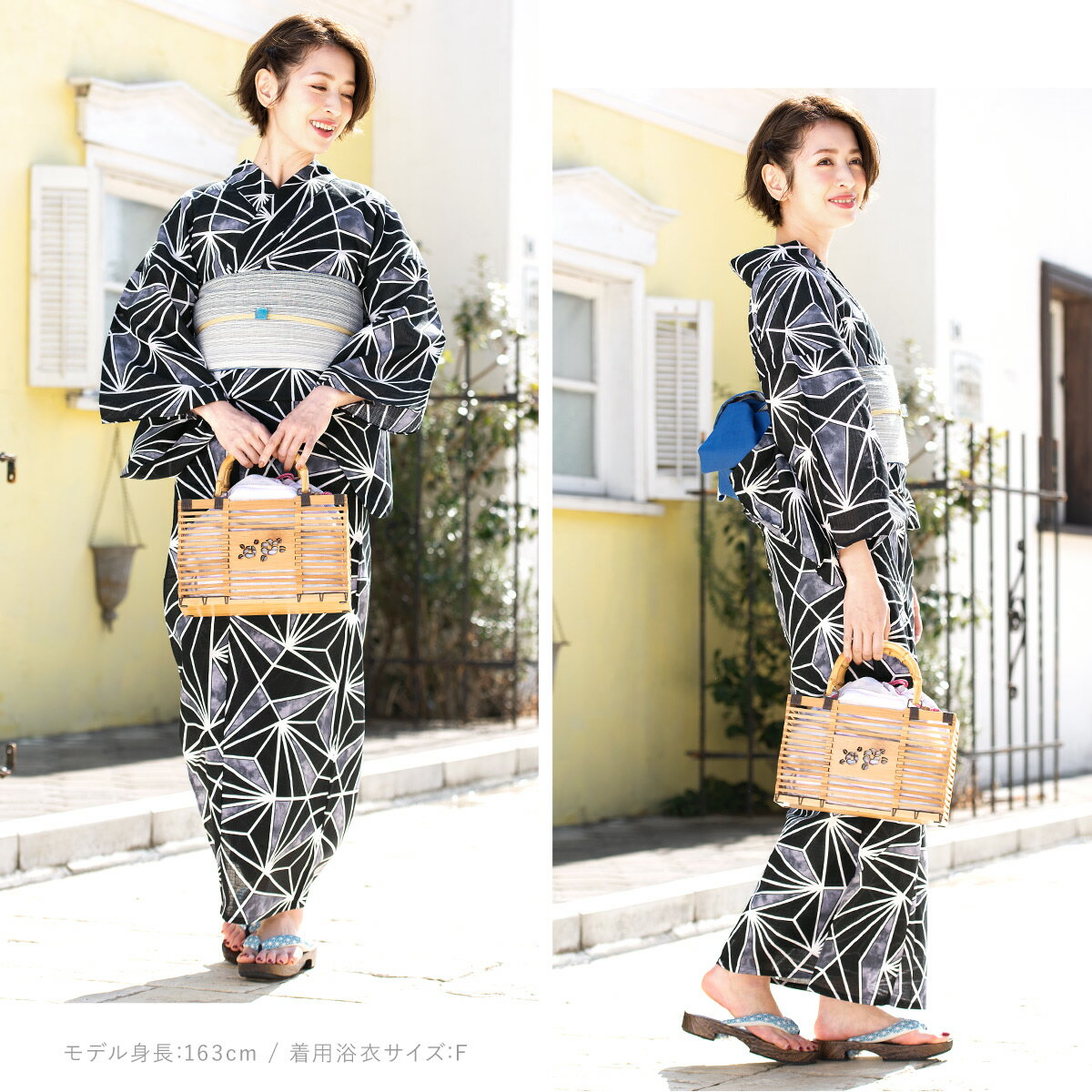 estimated delivery.■浴衣(適応身長:身丈の5cm前後)(素材)表地:綿100% 裏地:なし身丈袖丈裄丈フリーサイズ約165cm約49cm約68cm■帯(素材)表地:綿85% 麻15% 裏地:綿100%幅長さサイズ約17cm約396cm■下駄(適応サイズ:23.0〜24.5cm)(素材)鼻緒:ポリエステル 台:桐幅長さ高さサイズ約8cm約24.2cm約3.5cmこちらの商品は、浴衣・帯・下駄の3点セットです。